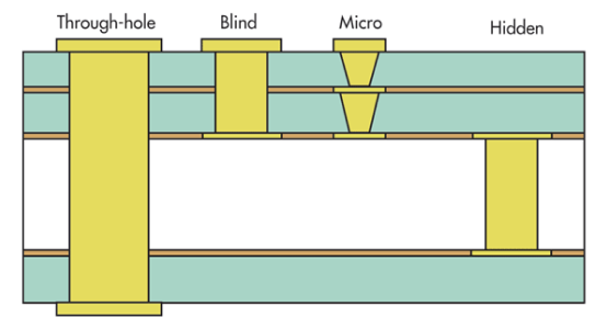 Vias come in different configurations including through-hole, blind, micro, and hidden.