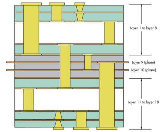 Multilayer boards can incorporate different types of vias to minimize the number of layers required.